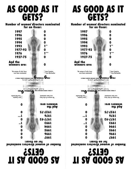 Guerrilla Girls é um coletivo anônimo de artistas feministas e antirracistas de Nova Iorque. Desde 1985, valendo-se de táticas de comunicação, denunciam com humor e eficácia a discriminação sofrida pelas mulheres no mundo da arte. Elas intervêm ruas e galerias de Nova Iorque de forma anônima, utilizando máscaras de Gorilas e nomes de artistas falecidas (como Kathe Kollwitz). Elas entendem que o conteúdo denunciado é mais importante que a autoria individual. A sua agenda feminista também considera a crítica ao colonialismo e ao racismo. Em relação à história da arte, colocam em evidência até que ponto a mulher tem sido representada, geralmente nua, constituindo uma das temáticas principais, mas ignorada como artista. As suas análises se focam no mundo da arte e na indústria do cinema, a cultura popular, os estereótipos de gênero e a corrupção que invade o sistema da arte. Seus cartazes utilizam o gráfico e o humor como ferramentas de alto impacto nas suas mensagens. As pessoas que atualmente participam do grupo enfatizam as campanhas contra a violência contra a mulher, defendem a igualdade racial e se opõem as guerras e ditaduras.