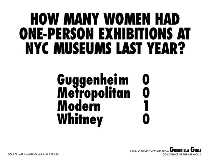 Guerrilla Girls é um coletivo anônimo de artistas feministas e antirracistas de Nova Iorque. Desde 1985, valendo-se de táticas de comunicação, denunciam com humor e eficácia a discriminação sofrida pelas mulheres no mundo da arte. Elas intervêm ruas e galerias de Nova Iorque de forma anônima, utilizando máscaras de Gorilas e nomes de artistas falecidas (como Kathe Kollwitz). Elas entendem que o conteúdo denunciado é mais importante que a autoria individual. A sua agenda feminista também considera a crítica ao colonialismo e ao racismo. Em relação à história da arte, colocam em evidência até que ponto a mulher tem sido representada, geralmente nua, constituindo uma das temáticas principais, mas ignorada como artista. As suas análises se focam no mundo da arte e na indústria do cinema, a cultura popular, os estereótipos de gênero e a corrupção que invade o sistema da arte. Seus cartazes utilizam o gráfico e o humor como ferramentas de alto impacto nas suas mensagens. As pessoas que atualmente participam do grupo enfatizam as campanhas contra a violência contra a mulher, defendem a igualdade racial e se opõem as guerras e ditaduras.