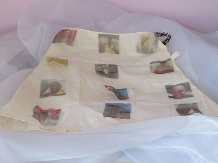 Em Marias de minha vida (2020), a artista visual, arte educadora, pesquisadora e mestre em educação, Mirella Maria articula tempo e memória alinhavados em narrativas biográficas de membros de sua família. O ponto de partida para a pesquisa é a tentativa de a artista entender o porquê de seu sobrenome ser “Maria” — um nome comum dentro do contexto brasileiro. No processo, Mirella Maria faz registros orais e fotográficos de membros da família, uma imersão na qual a artista descobre ricas histórias de familiares vinculadas ao sobrenome-nome e a memórias ancestrais. Na busca, uma curiosidade não compartilhada por outras pessoas da família, a artista depara-se com resíduos coloniais presentes na construção de seu sobrenome-nome: “Maria” é o nome de proprietários de africanos escravizados, transferido, como marca de poder, para gerações de famílias pretas no Brasil. Mirella Maria formata em vestido imagens dessa rede de membros da família, formada principalmente por mulheres, que carregam esse sobrenome-nome. Assim, as “‘Marias’ que percorreram o tempo, continuam presentes em nome, sobrenome, imagem e memória viva.”